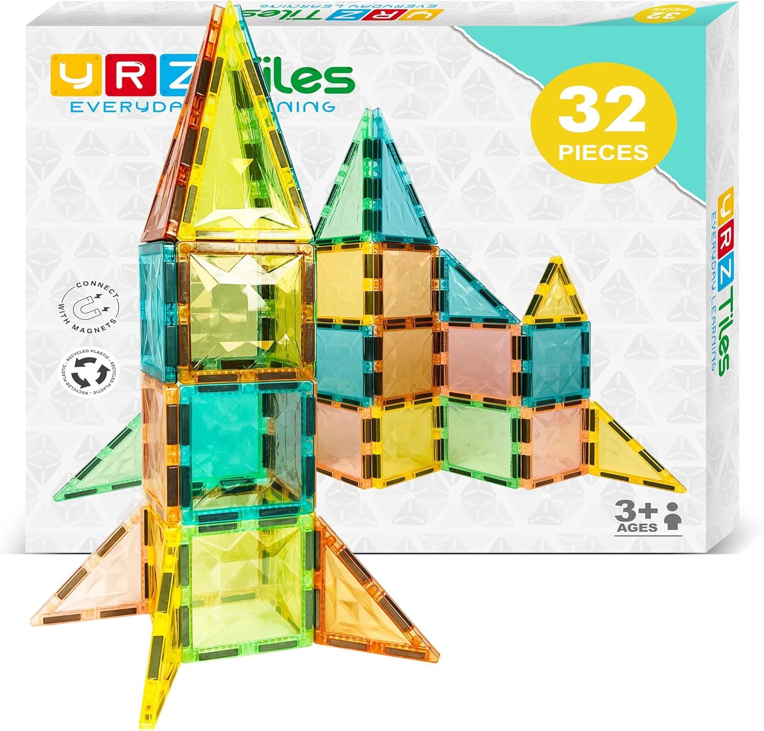 - Construye grandes sueños con 32 piezas: sumérgete en un mundo de creatividad con 32 vibrantes azulejos magnéticos. Perfecto para construir todo, desde formas simples hasta estructuras elaboradas, este juego está diseñado para alimentar la imaginación de tu hijo